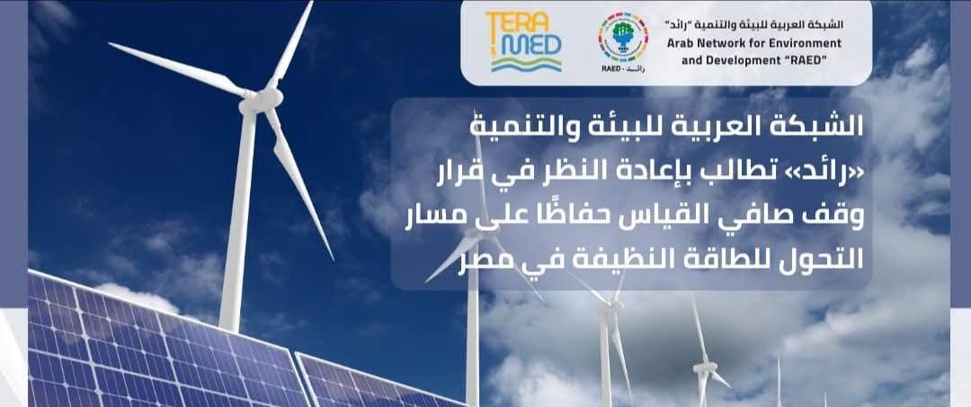 تعرب الشبكة العربية للبيئة والتنمية «رائد» عن بالغ قلقها، إزاء إعلان «جهاز تنظيم مرفق الكهرباء» عن قرار وقف العمل بآلية صافي القياس (Net Metering) اعتباراً من 31 ديسمبر 2025، باعتبار أنه قرار من شأنه إحداث تأثيرات وتداعيات سلبية مباشرة، تعوق الجهود الوطنية الهادفة إلى توسيع استخدامات الطاقة المتجددة في مصر.